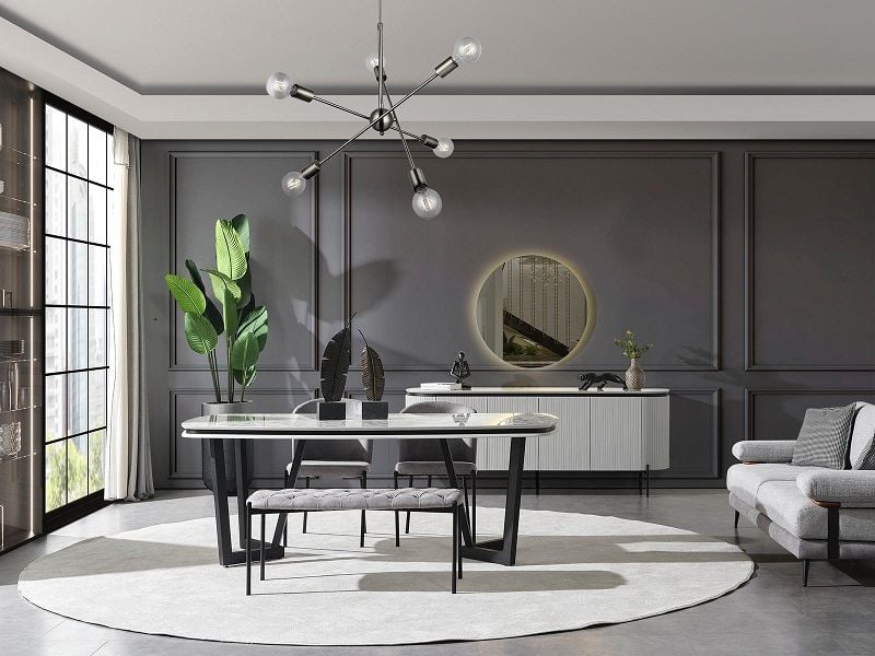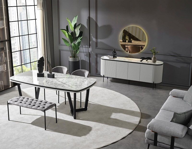- Tesla Plus Yemek Odası, 1 Adet masa, 4 Sandalye 1 Benc ,1 adet konsol, 1 adet aynadan, oluşmaktadır.