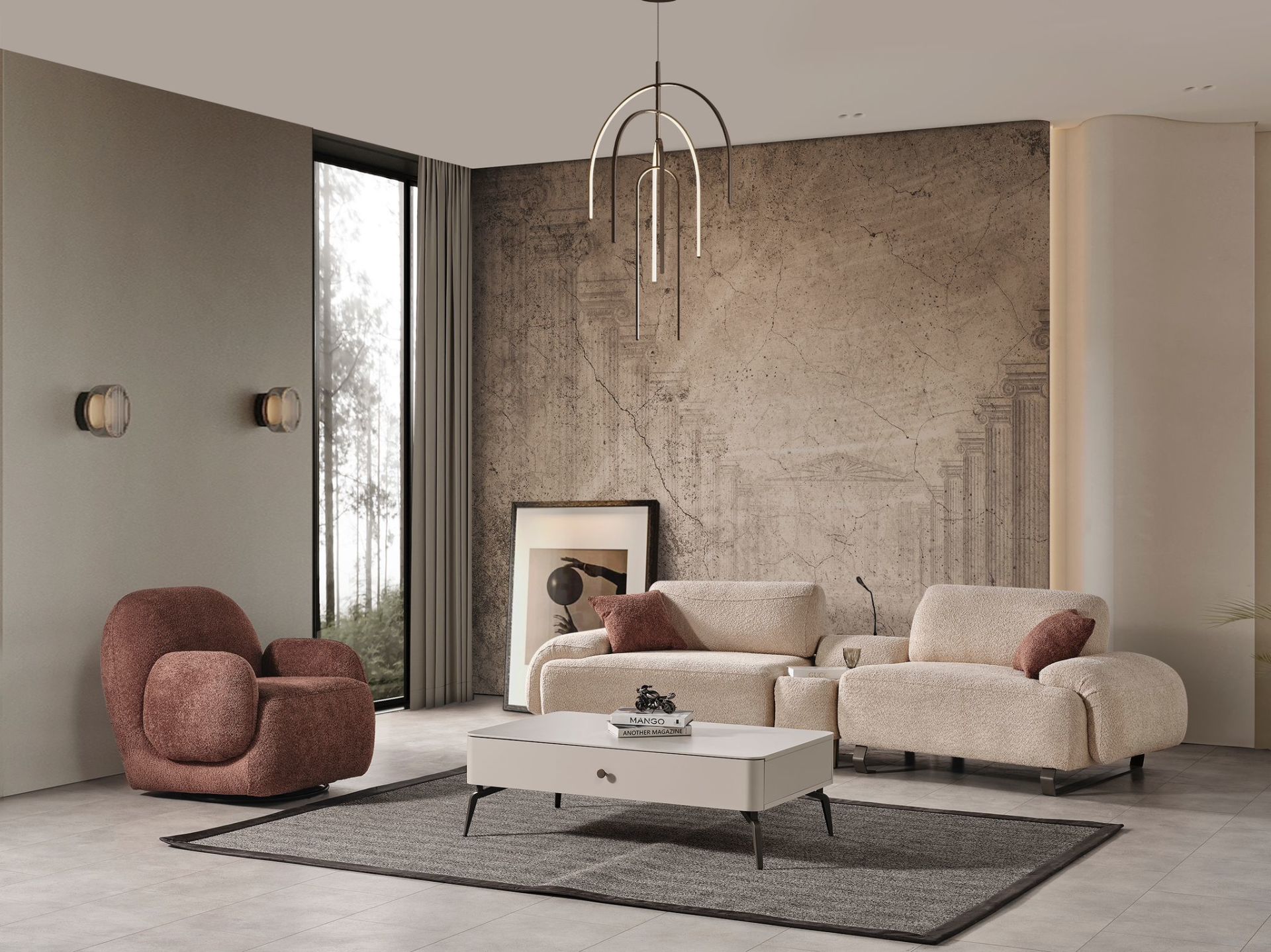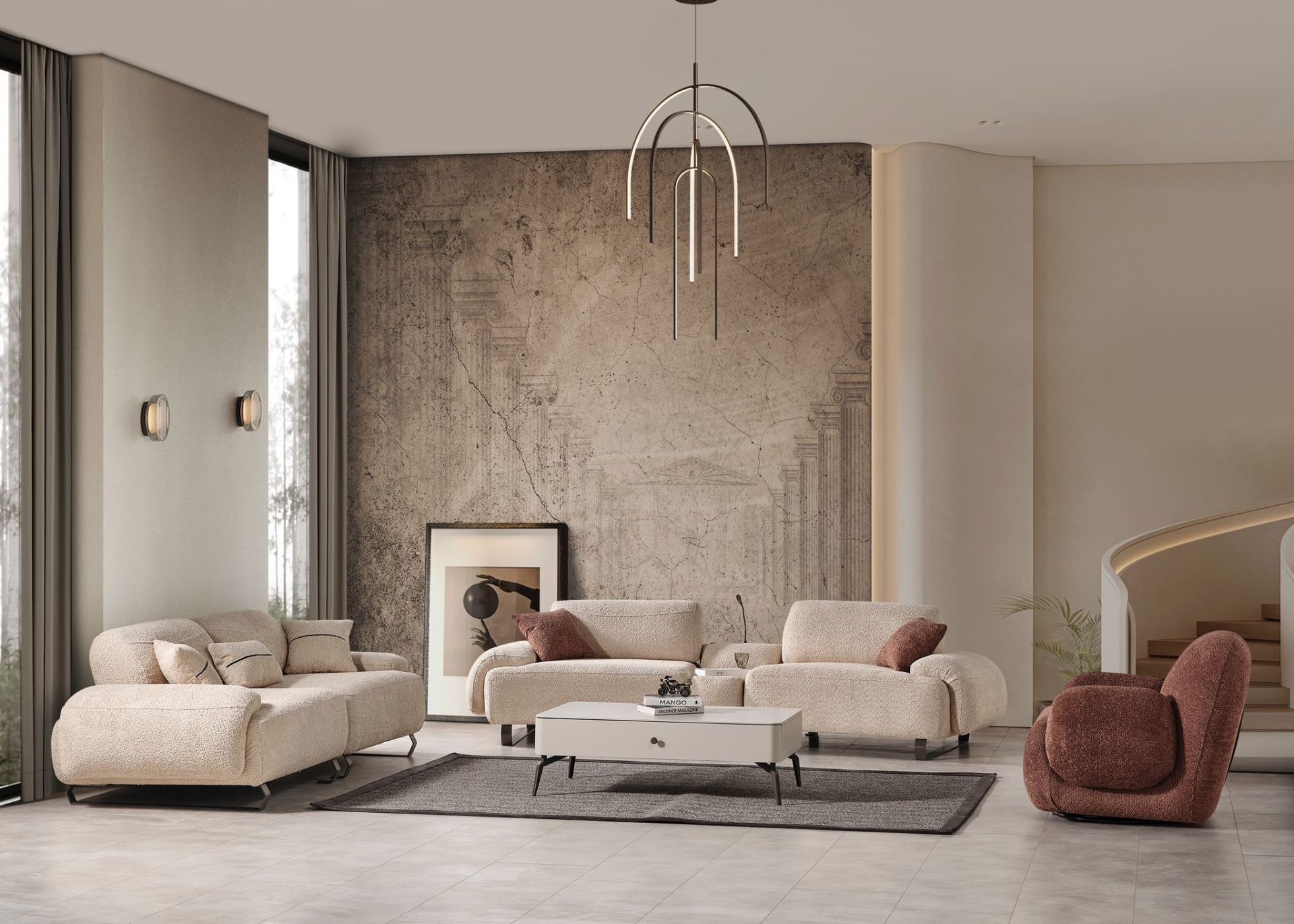 - Truva Koltuk Takımı, 1Adet 3lü sehpalı kanepe, 1 Adet 3 lü kanepe 1 Adet berjer'den oluşmaktadır.