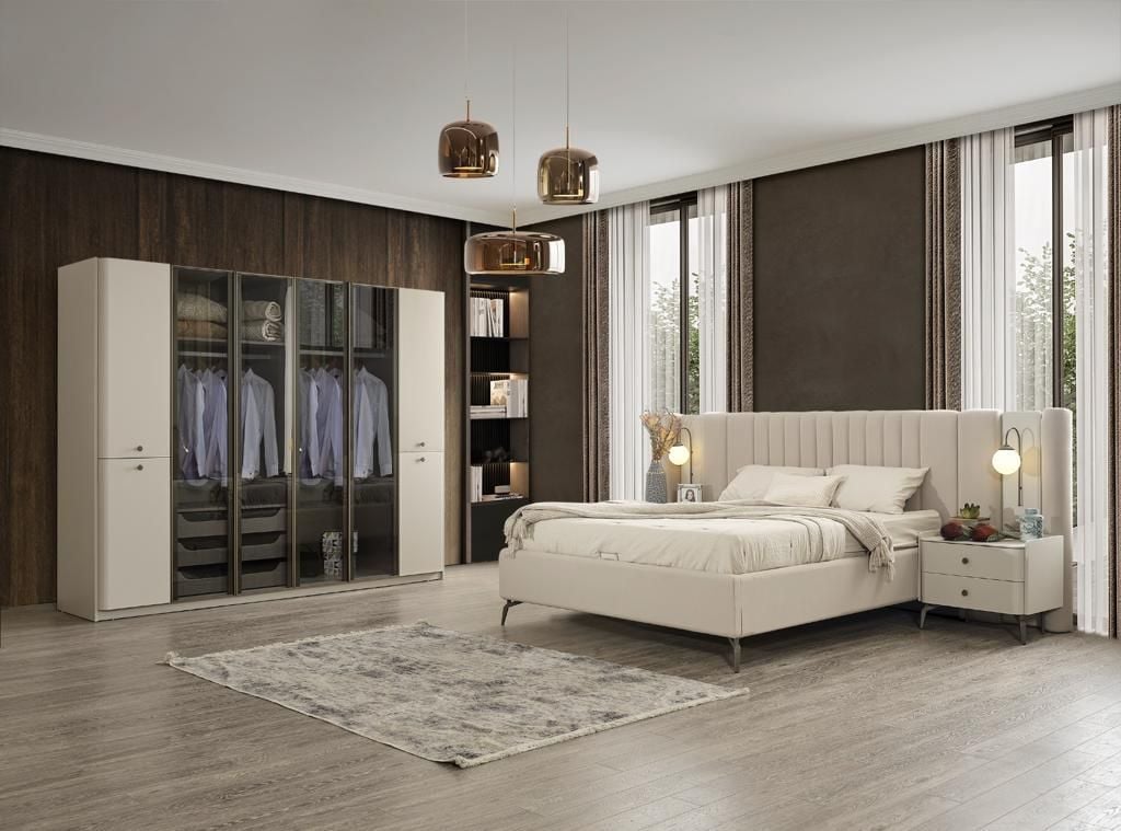 - Truva Yatak Odası Takımı, Gardolap, Şifonyer, Bazalı karyola ve 2 adet Komodin'den oluşmaktadır.