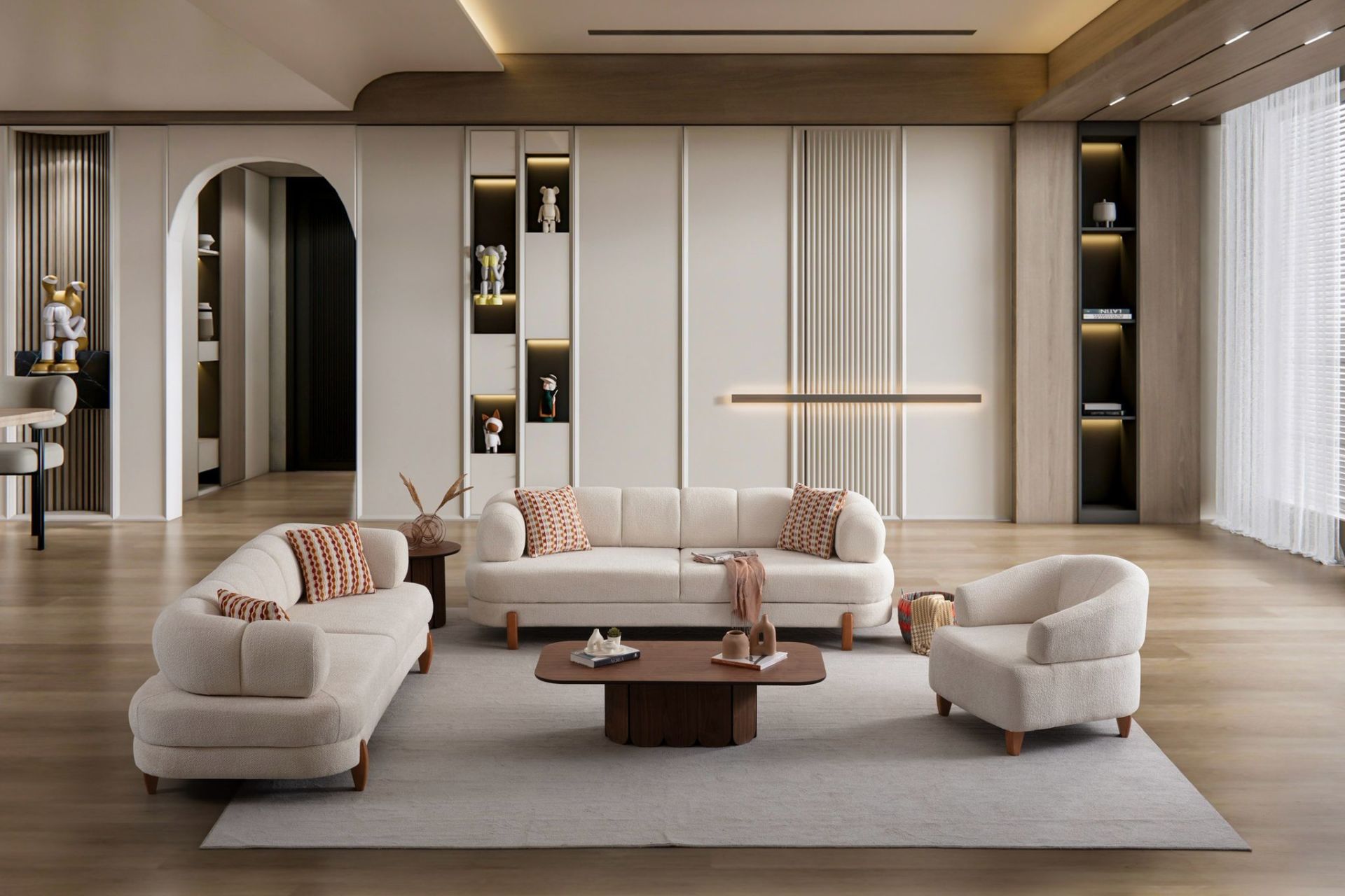- Tual Koltuk Takımı; 2 Adet 3 'lü Kanepe, 1 Adet Berjerden oluşmaktadır.