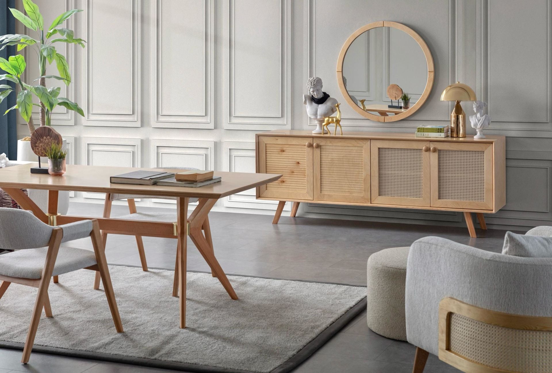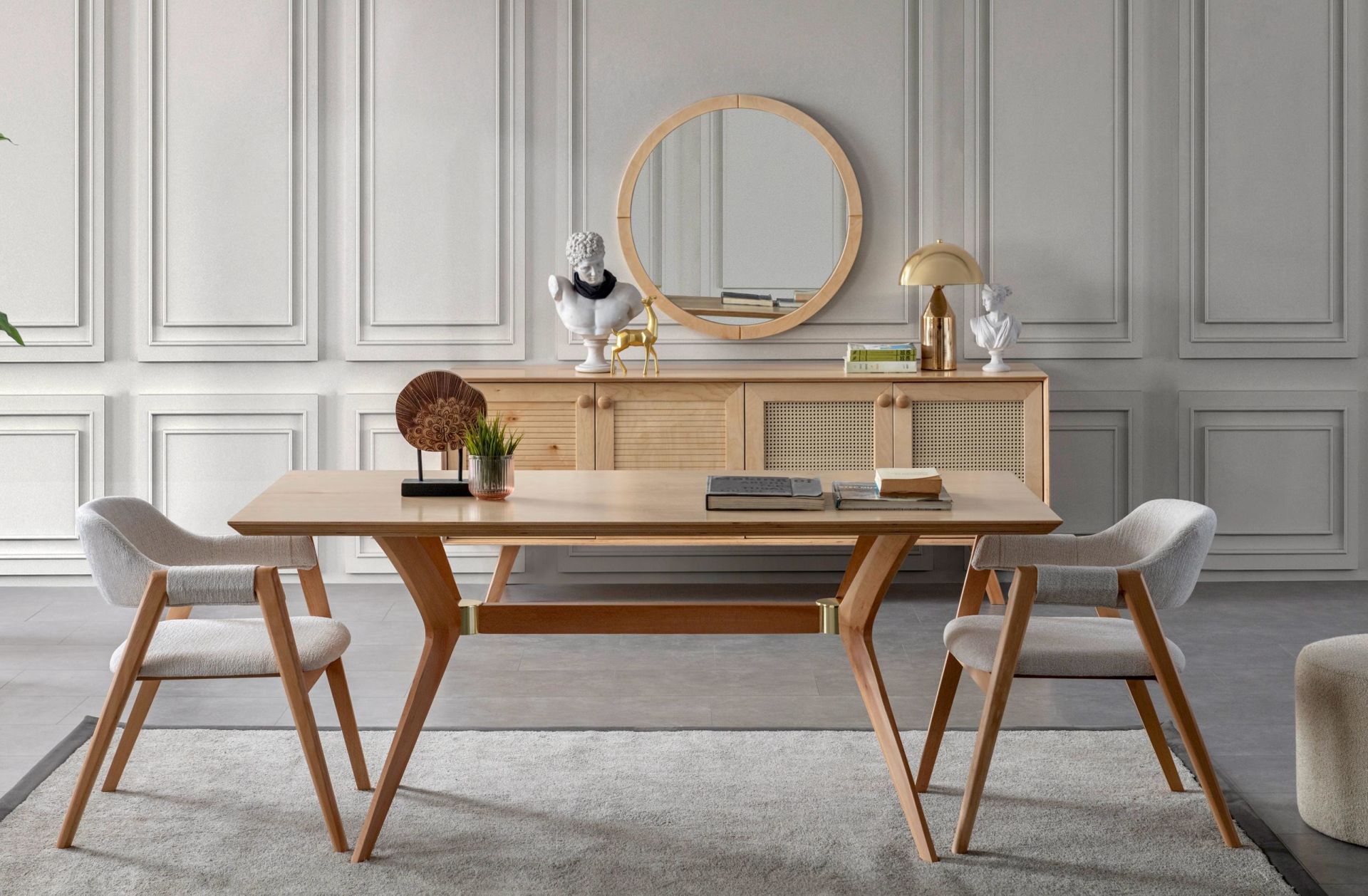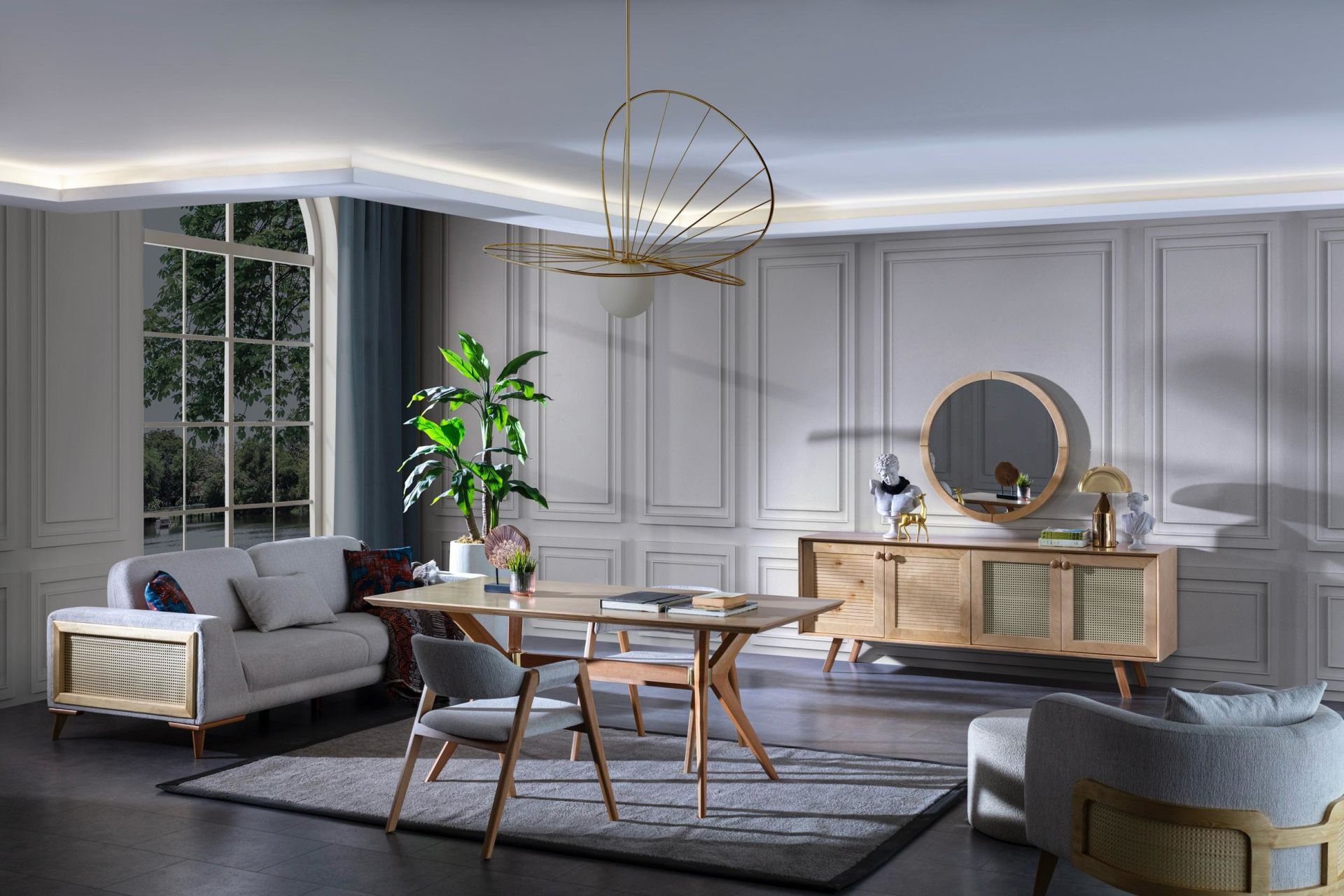 - Valeria Yemek Odası Takımı, Konsol + Ayna,Yemek Masası 6 adet Stock Sandalyeden oluşmaktadır.