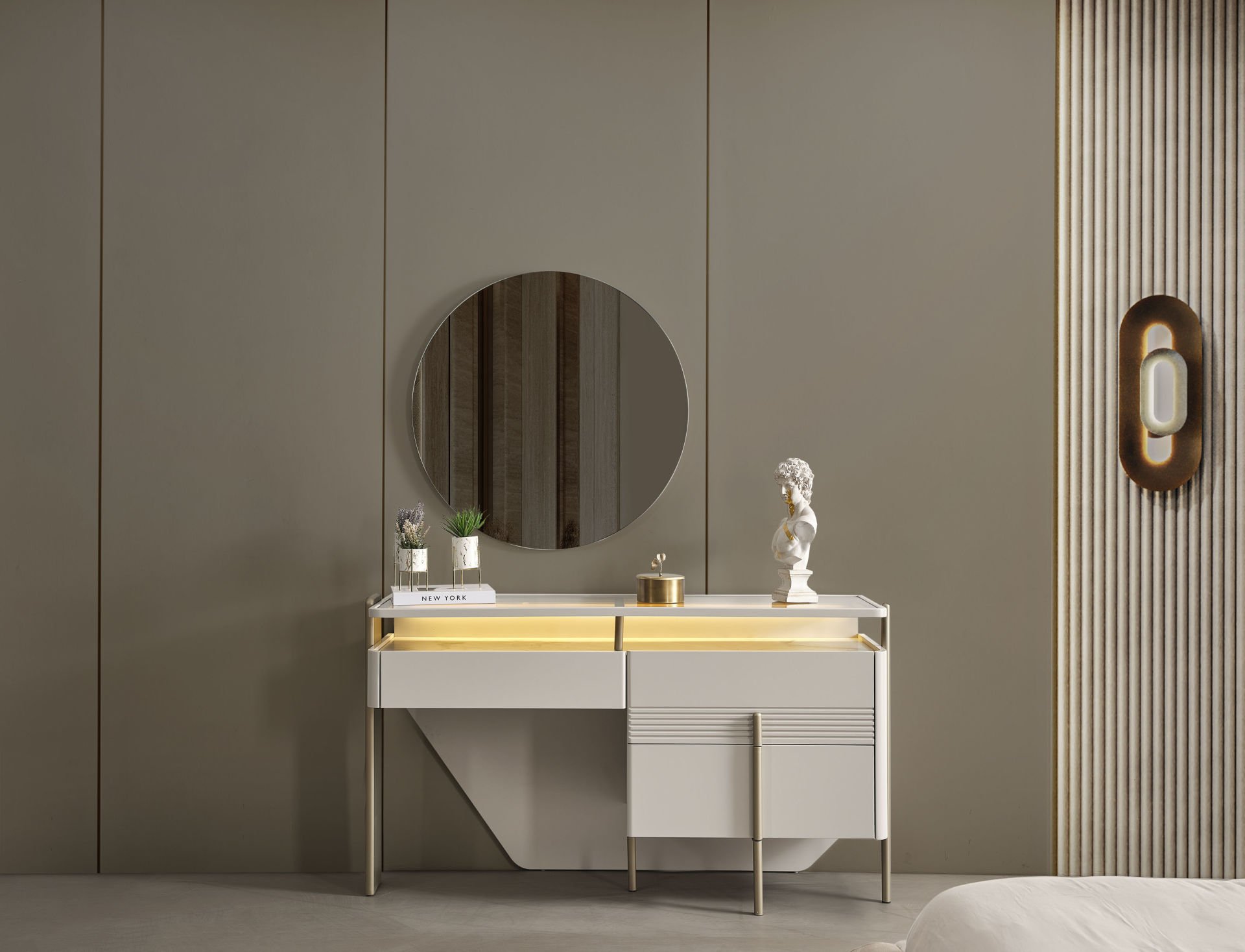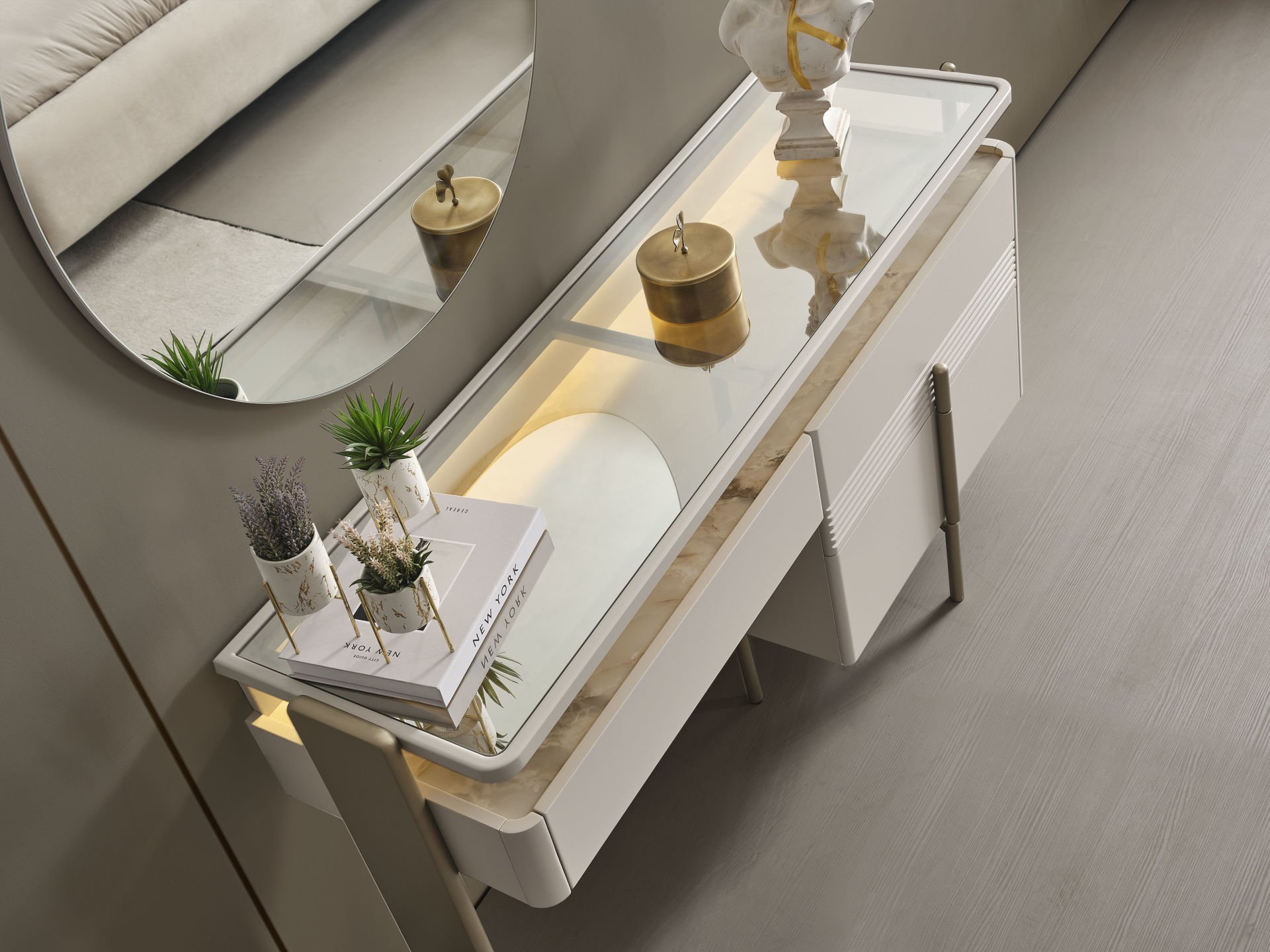 - Vega Yatak Odası , 1 Adet 6 kapılı dolap, 2 adet komodin, 1 adet bazasız karyola başlık, 1 adet Şifonyer ve aynasından oluştadır.