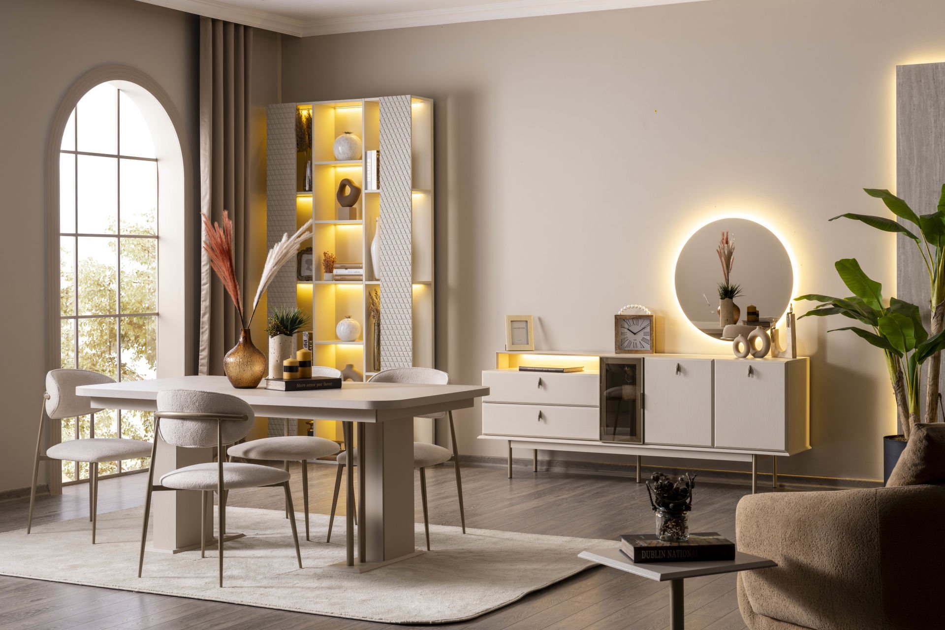 - Viral yemek odası içeriği: 1 Adet Konsol+aynası, 1 Adet Masa, 6 Adet Sandalye den oluşmaktadır.