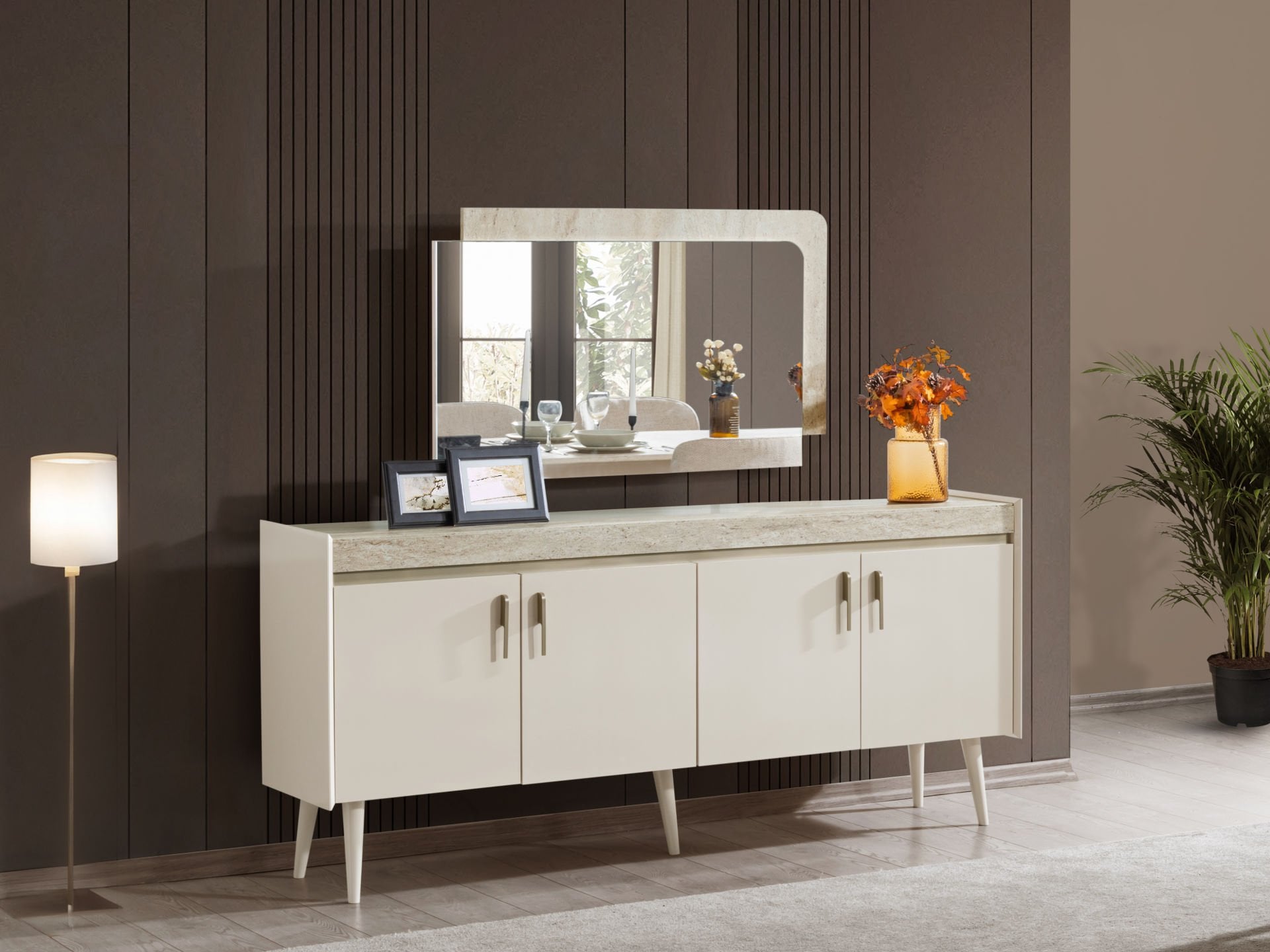 - Vista Yemek Odası takımı; Konsol ayna , Yemek masası, 6 adet sandalye den den oluşmaktadır.