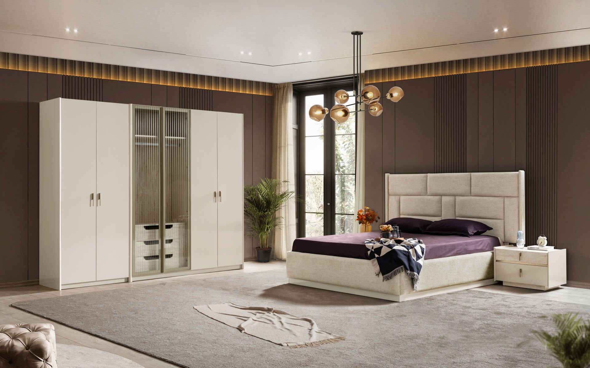 - Vista Yatak Odası , 1 Adet 6 kapılı dolap, 2 adet komodin, 1 adet bazasız karyola başlık, 1 adet Şifonyer ve aynasından oluştadır.