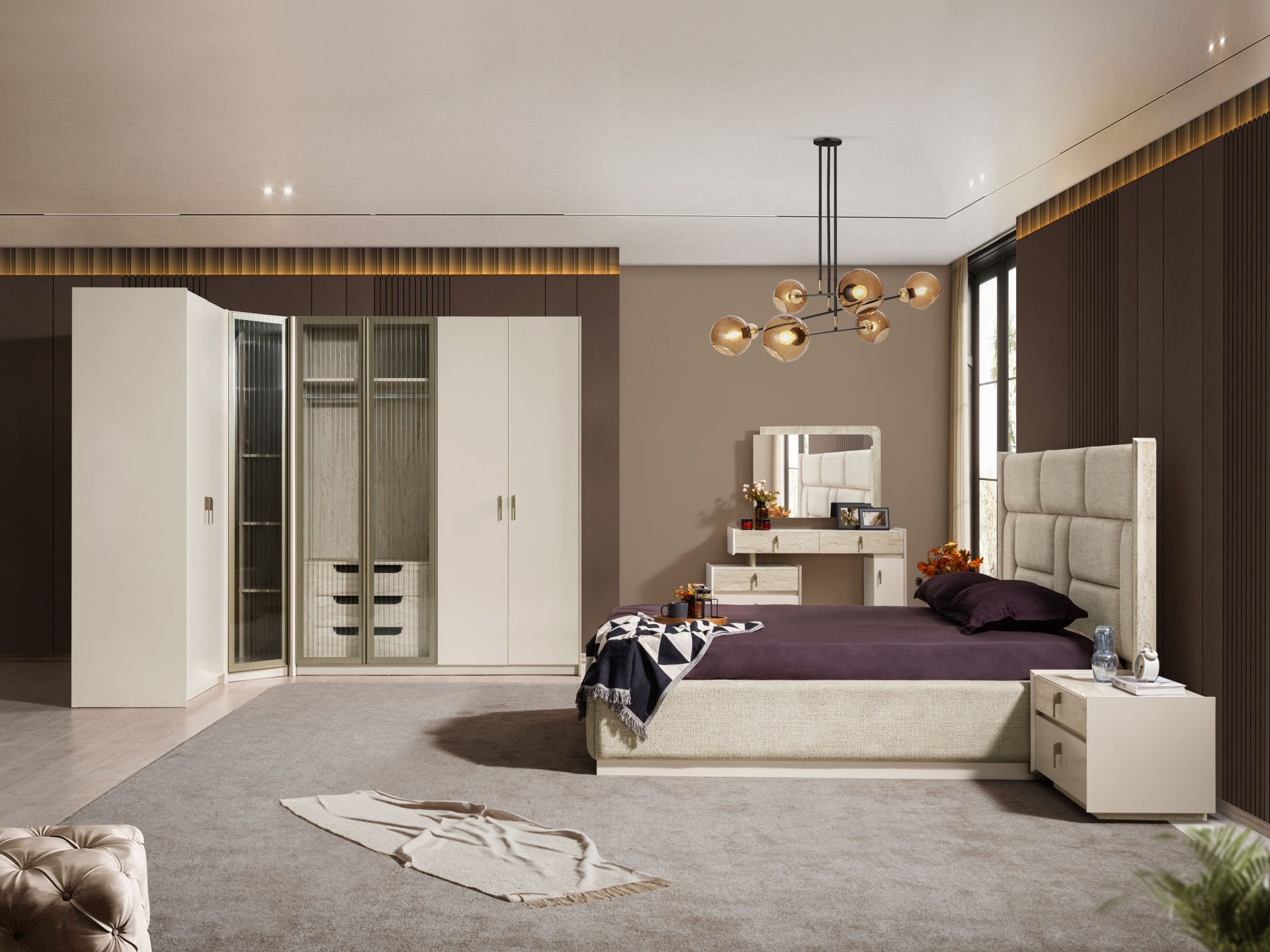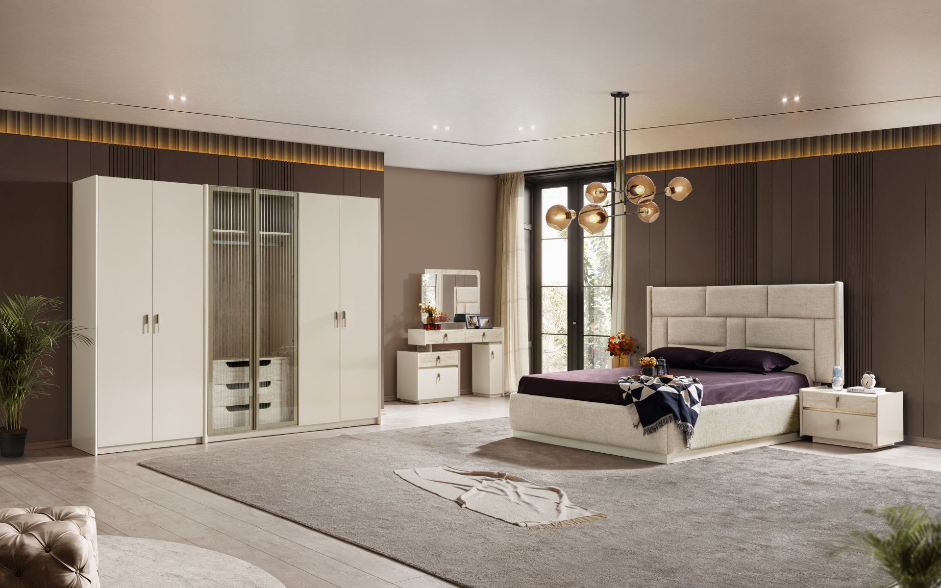 - Vista Yatak Odası , 1 Adet 6 kapılı dolap, 2 adet komodin, 1 adet bazasız karyola başlık, 1 adet Şifonyer ve aynasından oluştadır.